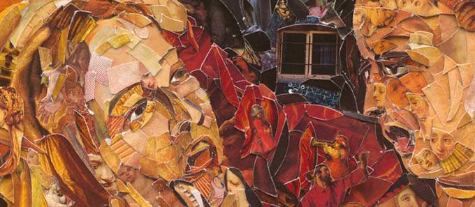 Muniz simula le pennellate di questi quadri con ritagli di dipinti riprodotti in volumi di storia dell’arte, attentamente selezionati non solo per i loro valori cromatici ma anche per le immagini
