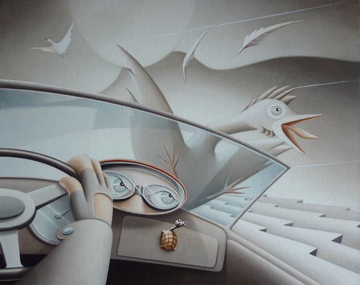 Paggiaro continua a comporre un affascinante caleidoscopio usando una lentezza esecutiva che lo avvicina a quello di un antico miniaturista; tuttavia straordinariamente il risultato raggiunto dopo mesi di lavoro è quello di un forte dinamismo, quasi futurista nell’accezione aeropittorica.