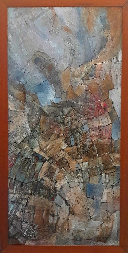 Vilma Maiocco e Paolo Di Nozzi sono entrambi artisti aniconici. Una interviene su superfici bidimensionali, come fa una pittrice che, oltre al colore, utilizza tecniche che includono un tipo particolare di collage; l’altro è uno scultore nel senso tradizionale del termine.