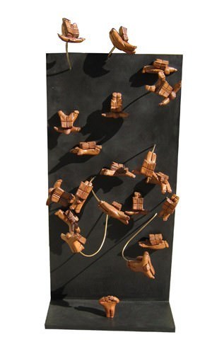 Nell' attesa che il soffio divino animi e muova le sculture in terracotta esposte a Torino nella Galleria Giorgio Marosi è possibile esaminare le prospettive e i lavori panoramici di Vincent Maillard. Una narrazione semplice, quella dell’ artista francese, che stimola paesaggi probabili in regioni arcaiche dove per un’ istante è possibile togliere la pelle iperrealista che avvolge l’osservazione ordinaria delle cose, per tornare allo sguardo iniziale e disincantato di quando tutto era ancora un gioco. La mostra, curata da Giorgio Marosi e Fortunato D’Amico, evidenzia i punti di vista di chi, eletto a prevedere, anticipa un universo di emozioni mitologiche e quotidiane di ciò che sarà. Al contrario è possibile dare letture inverse di quello che è stato. Un viaggio a ritroso per analizzare contesti collettivi e privati in cui gli esseri umani recitano i loro drammi e costruiscono il loro ambiente. L’artista nasce a Parigi nel 1957 ma vive e lavora a Genova dagli anni settanta. Le frequentazioni con Emanuele Luzzati sicuramente influenzano l’impostazione della scena narrativa. I palcoscenici di Maillard sono fitti di omini laboriosi, protagonisti impegnati a costruire un mondo logicamente assurdo, oppure irrazionalmente ragionevole. comunque alla ricerca dell’equilibrio. Individui come formiche, bloccati nell’attimo fuggente dell’azione, che ironicamente compiacciono il nostro modo di astrarci in riflessioni speculative sul senso della vita. Esplorazioni sarcastiche in un universo artefatto che presenta la bellezza nella fusione di gesti legati al lavoro di piccoli uomini, assunti come modelli e strumenti di linguaggi simbolici. Geometrie attente a restituire assemblaggi modulati per innalzare opere omologate in sistemi sociali in cui gli esseri assumono compiti precisi di cittadini militanti. L’ impressione è quella di una scultura trasportabile come un presepe, dove sembra possibile predisporre i corpi che popolano la scena e cambiare azione spostando i pezzi della rappresentazione, alla maniera del gioco degli scacchi. La proliferazione della discendenza è in queste sculture geneticamente seriale, contestualizzata nella materia, nelle forme, nei comportamenti che esortano a metafore ed antiche leggende. I libri sono scritture/sculture sacre, trasposte in ruote della conoscenza o percorsi spirituali genealogici, per ricordarci che l’arte è un viaggio di origini e mete lontane. L’abilità tecnica di Vincent Maillard nell’esprimere sentimenti e veicolare codici di comunicazione attraverso la terracotta è indiscutibile. Viene da domandarsi: e se Dio fosse un ceramista? In occasione della Fiera del Libro le sculture di Vincent Maillard saranno in mostra alla Galleria Giorgio Marosi dal 9 maggio al 13 giugno 2008.