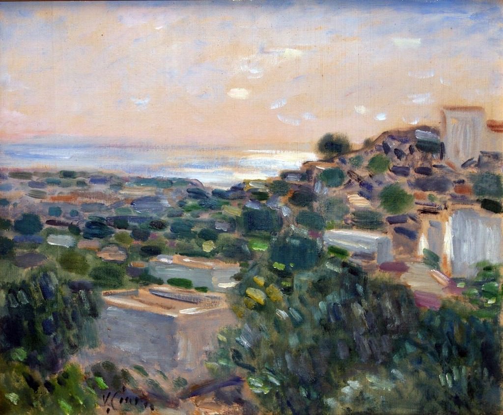 E più scava la sua memoria,in quanto dramma scenico che è la natura salentina, più altamente si condensa il senso malinconico nel tessuto delle opere. Il senso dello scavo crea uno spartiacque fra un primo periodo in cui la natura ha colori che saranno bianchi freddissimi venati d’azzurro cobalto,bianchi ardenti, verdi inteneriti e acidi,bruni decantati, ombre violette,argentei grigi, rossi calcinati; e un periodo che prende all’incirca i suoi ultimi vent’anni di lavoro, in cui l’abbandono della tradizione romantica della pittura di paesaggio meridionale,apre la meditazione lirica a una accentuazione di gialli e di viola,come segnale di reconditi sensi e di quiete profonda.