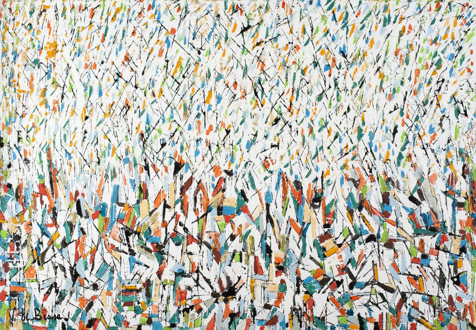 Verso la fine degli anni Settanta, attingendo ai mondi di Kandinsky, Mondrain, Pollock, Tancredi, Corpora e Scialoja, il Professore di Matematica Vincenzo Di Biase ne crea uno inedito, sintesi di processi imitativi, di meccaniche astrattive e di ipnotiche cromazioni.