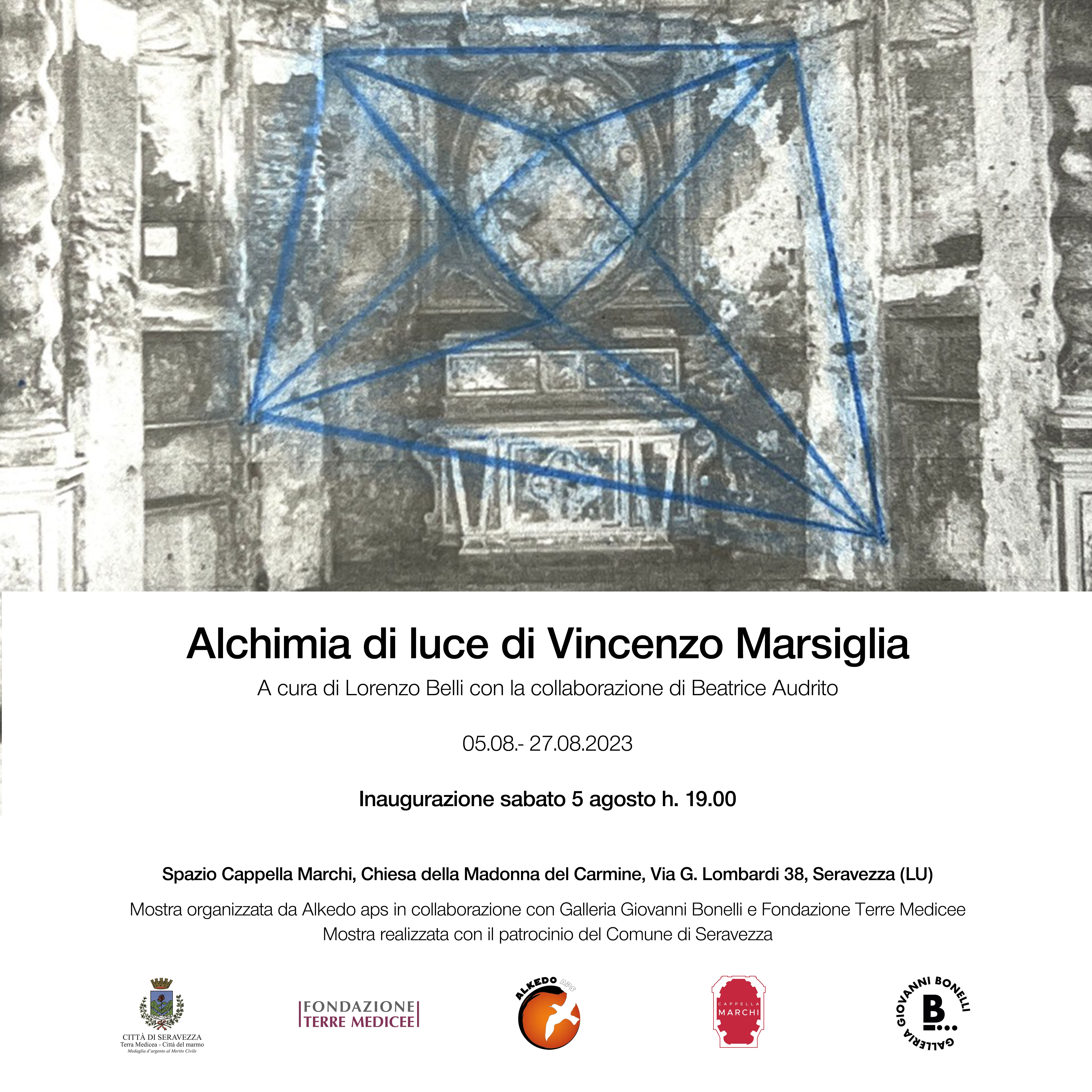 Il giorno 5 agosto alle ore 19 allo lo Spazio Cappella Marchi – chiesa della Madonna del Carmine a Seravezza (Lu) ci sarà l’opening della mostra “Alchimia di Luce” di Vincenzo Marsiglia a cura di Lorenzo Belli con la collaborazione di Beatrice Audrito. Si tratta del terzo appuntamento della stagione artistica 2023 allo Spazio Cappella Marchi, gestito da Alkedo aps, che si contraddistingue per il dialogo tra ambientazione classica e nuovi linguaggi dell’arte contemporanea. Vincenzo Marsiglia ha ideando appositamente per questa esposizione una struttura luminosa costituita da un unico neon blu, realizzato in vetro soffiato di Murano, a forma di stella a quattro punte che si posiziona all'interno dell’architettura della chiesa. Vincenzo Marsiglia è un autore poliedrico: parte dall'unitarietà stilistica di un simbolo grafico semplice, quasi primitivo, che viene declinato per mezzo di tecniche sempre diverse, divenendo quasi un pretesto iconico per sperimentare il circostante e tutte le sue possibilità. A guidare la sua ricerca è la continua formulazione della stella a quattro punte, che si definisce come misura di tutte le cose, riprodotta su superfici o, come in questo caso, collocata sospesa nello spazio. Le opere di Marsiglia offrono la possibilità di isolare, per così dire, la luce nell'aria così da percepirne la profondità, terza dimensione nello spazio. La luce incide sull'ambiente come segno del presente, così l'opera Prospect dialoga con le tracce dinamiche della chiesa e gli effetti del tempo su questa, sugli antichi muri dell'architettura barocca, a ricordare l'inevitabile tramonto. L'ambiente come mezzo di ispirazione e valorizzazione dell'opera d'arte ripropone il problema della contestualizzazione dell'arte: un luogo dove architettura e luce possano fondersi e trasformarsi continuamente nel tempo, adattandosi al punto di vista dell'osservatore e al suo processo di cognizione.