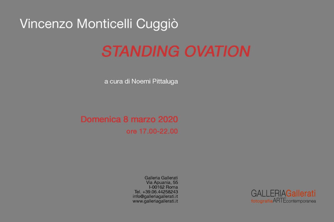 Vincenzo Monticelli Cuggiò (Napoli, 1969) esordisce alla Galleria Gallerati nel 2006 con una ricerca di fotografia intimista, in seguito analizza il contesto metropolitano e nel 2016 presenta Urbano, la sua prima personale, riproposta l’anno successivo alla V edizione di Castelnuovo Fotografia (Castelnuovo di Porto, RM). Dal 2010 le sue opere fotografiche sono in esemplare unico e dal 2017 realizza anche lavori tridimensionali, come Burro armato (riflessione sulla guerra e sulla pace), esposto nel 2019 all’Ospizio Giovani Artisti di Roma. Standing Ovation è la sua prima installazione site specific.