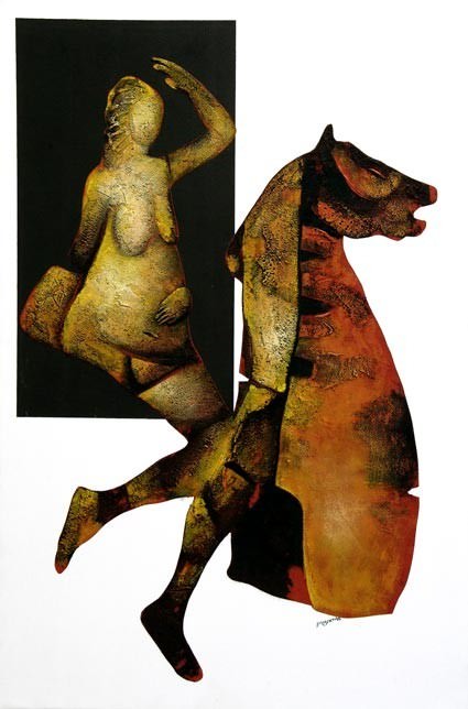 Il metarcaicismo tende al recupero del valore intrinseco dell’opera pittorica mediato dalla tradizione… Nel metarcaico si sviluppano nuove forme tendenziali: Klassica e citazionismo. Queste pongono la creatività artistica al di sopra “della forma e del colore”… Tutto ciò che si presenta come immagine storicamente riconosciuta, o come frammento di reperto archeologico, deve possedere una forza interiore, alla quale, superando l’identità del soggetto, investa quella conoscenza della realtà che per essere tale deve essere posseduta. Neoinformale, comunque, è l’ultimo genere che sto sviluppando e ciò non tanto per le sottintese tematiche emergenti, ma per la pura maniera storica del costruire, installando sul campo bianco della tela, sensazioni ed emozioni attraverso un artificio tecnico che muovendo dai proplasmi bizantini, recupera il cinquecento italiano, “osservando” le conquiste materiche del XX secolo”.