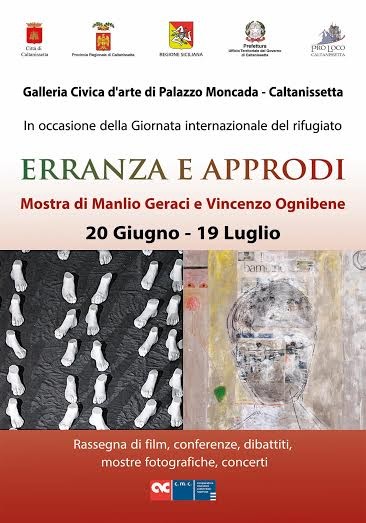 La Rassegna proposta dall’Amministrazione comunale di Caltanissetta, con il concorso di altri Enti e Associazioni e artisti, intende iniziare, a partire da giorno 20 giugno, Giornata mondiale dei profughi, indetta dalle Nazioni Unite, un percorso di riflessione sul concetto di “erranza”. Una mostra, innanzitutto, di due artisti di straordinaria sensibilità e dal percorso maturo e intenso, Vincenzo Ognibene e Manlio Geraci, proporranno nelle Sale di Palazzo Moncada un prestigioso allestimento di opere pittoriche e istallazioni aventi per oggetto tre focus: lo sradicamento dalle terre, l’Inquisizione in Sicilia e l’ebraismo della diaspora, la nuova immigrazione nel Mediterraneo