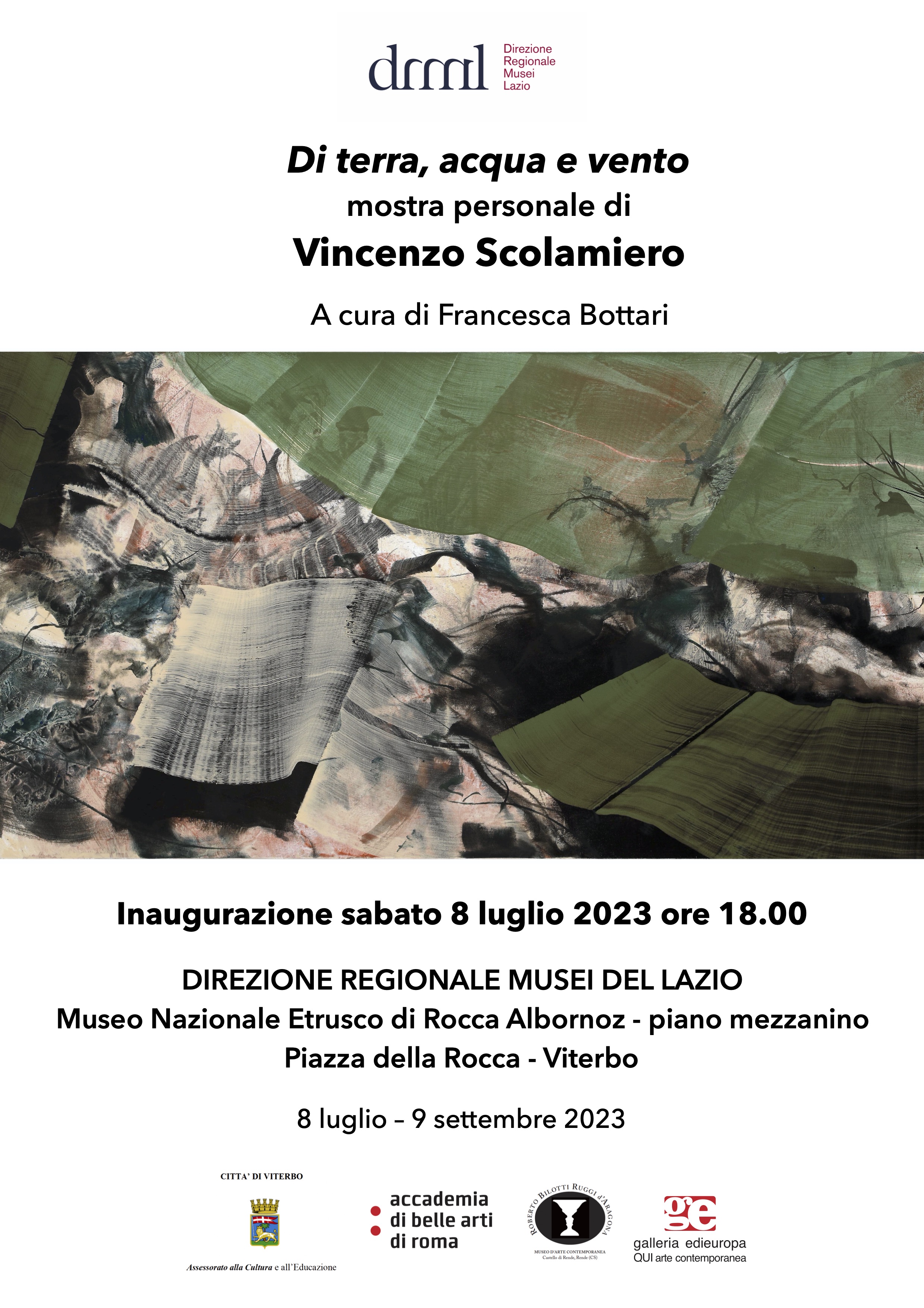 Il Museo Nazionale Etrusco di Rocca Albornoz dall’8 luglio 2023 accoglie nel salone e negli ambienti del mezzanino la personale di Vincenzo Scolamiero, artista romano di vasta esperienza espositiva italiana e internazionale, nonché docente di Pittura all’Accademia di Belle Arti di Roma.