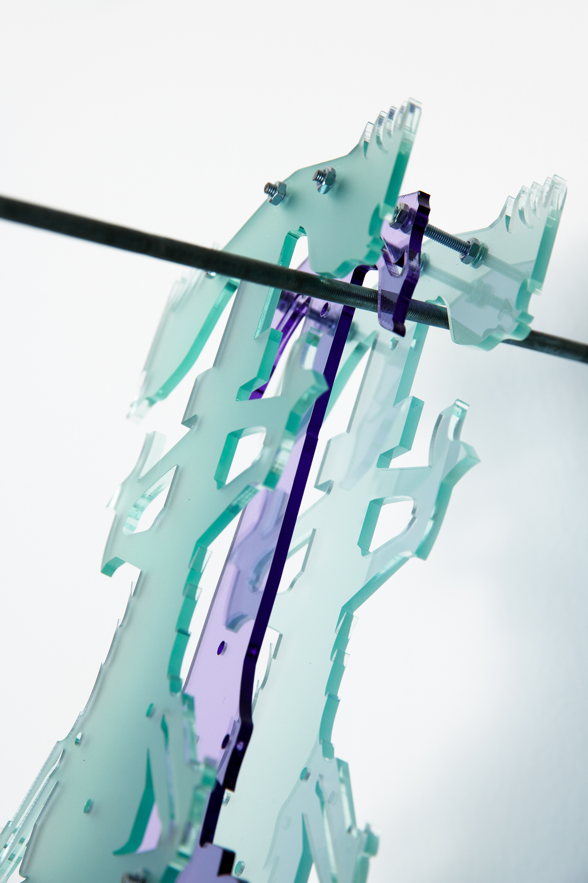 Nella sua installazione le opere si configurano come forme astratte e strutture architettoniche, collocandosi in un territorio sospeso tra memoria e futuro. Questi spazi residuali, privati del loro scopo originale dopo un uso intensivo, si trasformano sotto lo sguardo dell'artista in territori liminali dove il tempo lineare imposto dall’uomo viene sostituito da un tempo organico, ciclico e non umano.