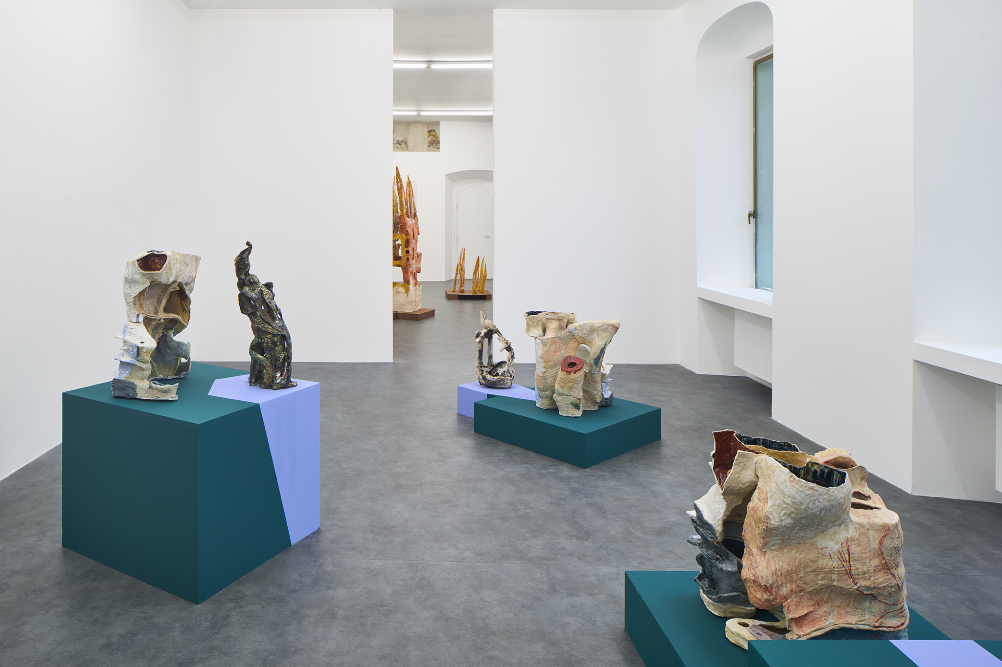 The works in La scultura che vorrei diventare explore sculpture not as a fixed object but as something in flux, something becoming. They recall ancient vessels, skeletal remains, landscapes shaped by time. Some enclose water, others open into hollow spaces, where absence is as present as substance. Interior and exterior dissolve into one another, suggesting a permeability that resists clear distinction.