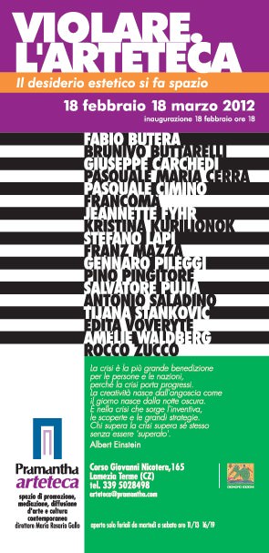 Pramantha Arte contemporary art gallery ha il piacere di annunciare che sabato 18 febbraio, in Corso Giovanni Nicotera n. 165, nasce a Lamezia Terme la Pramantha Arteteca: uno spazio di promozione, mediazione e diffusione d’arte e cultura contemporanea, a metà strada tra il museo e la galleria, che funziona come una biblioteca, dove è possibile prendere in prestito un’opera come si fa con un libro, promuovendo l’idea della libera circolazione dell’opera d’arte e il servizio dell’arte in prestito, attraverso un sistema di abbonamento. Destinatari del servizio sono singoli individui, enti pubblici e privati, studi professionali, associazioni, scuole e università.