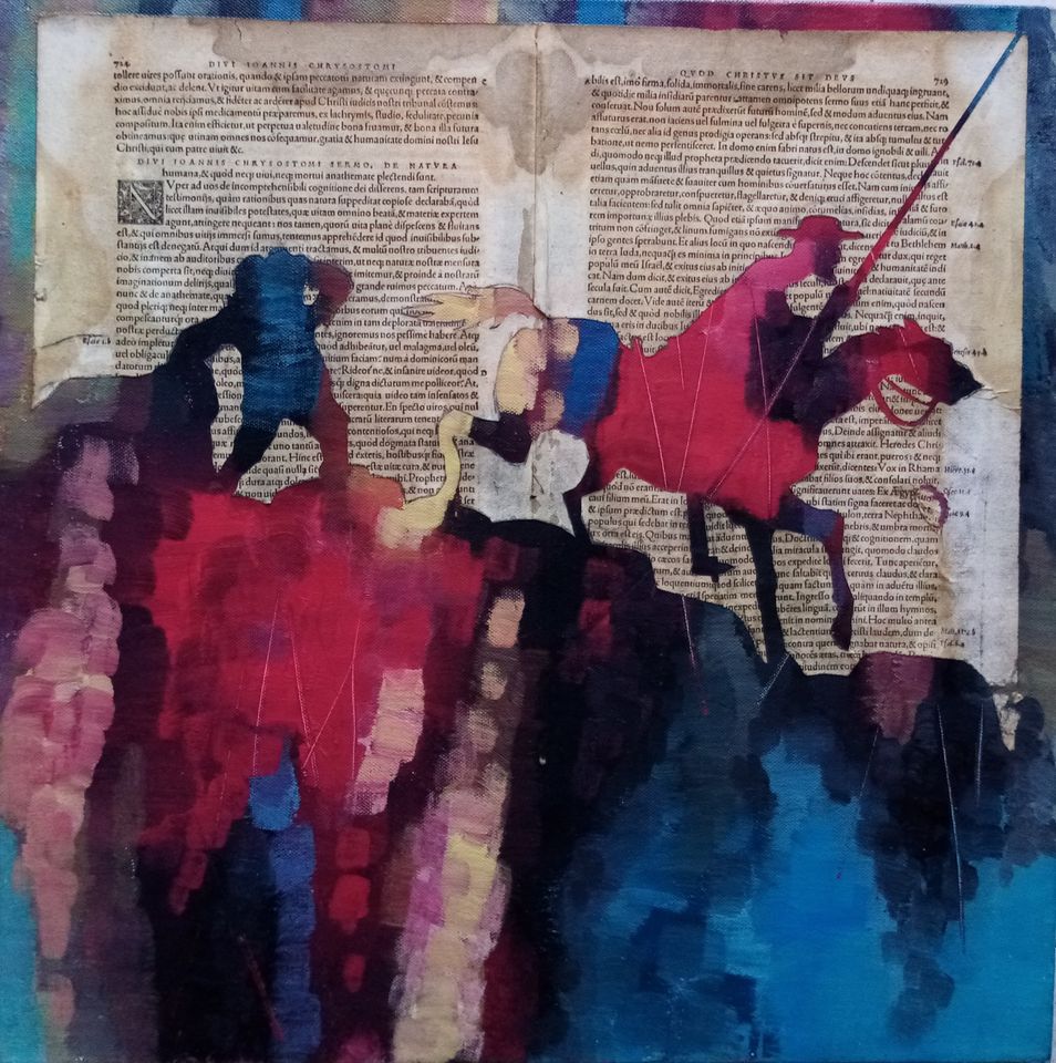 Al primo e al secondo piano di Area 42 opere realizzate ritagliando silhouettes di personaggi letterari (Dante e Virgilio, Don Chisciotte e Sancio Panza) o di animali (aironi e farfalle) da pagine di libri del Cinquecento e del Seicento e applicandole poi su superfici materiche variopinte (cemento)