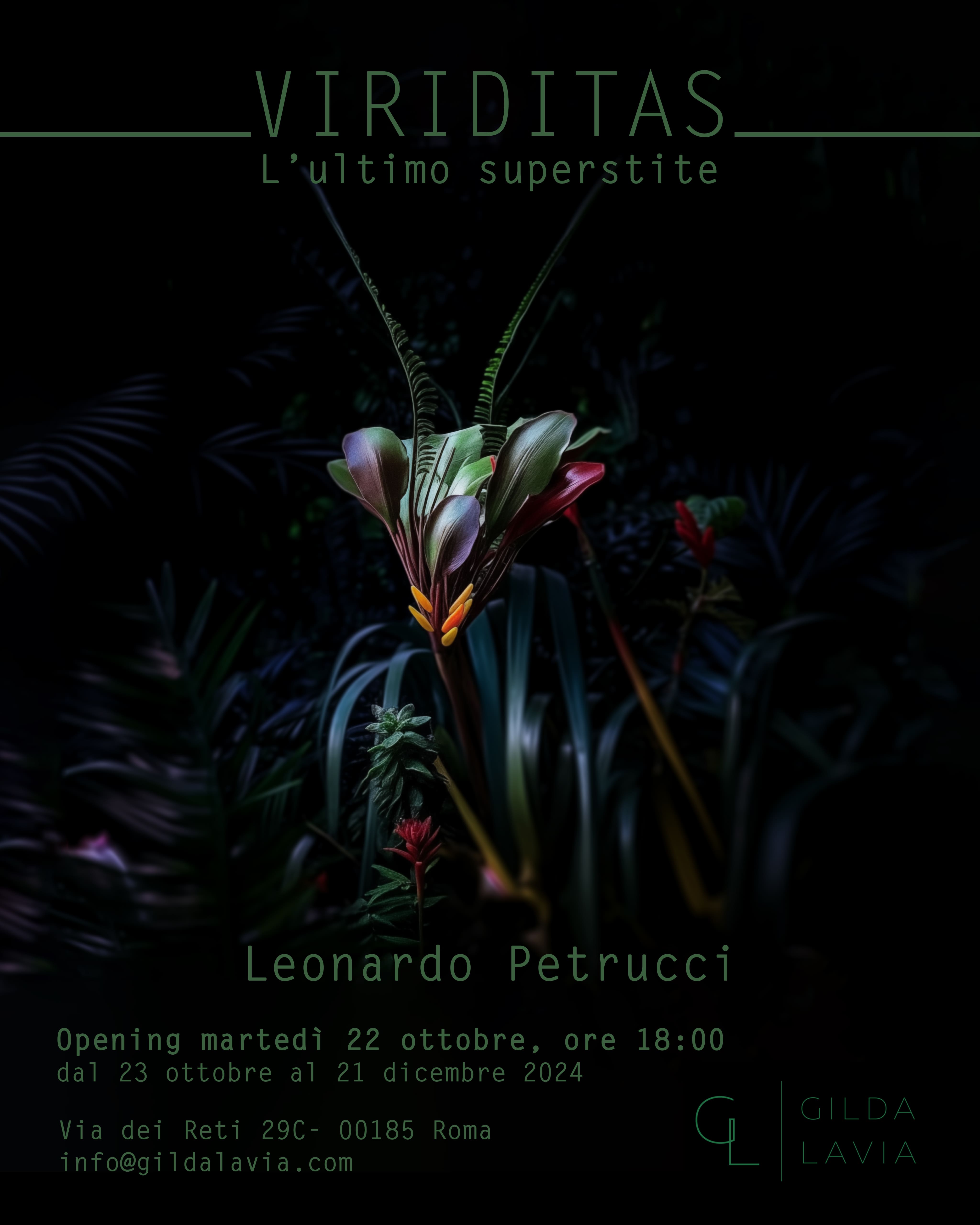 La galleria Gilda Lavia di Roma ha il piacere di ospitare VIRIDITAS - L’ultimo superstite, mostra personale dell’artista Leonardo Petrucci che inaugurerà martedì 22 ottobre alle ore 18.