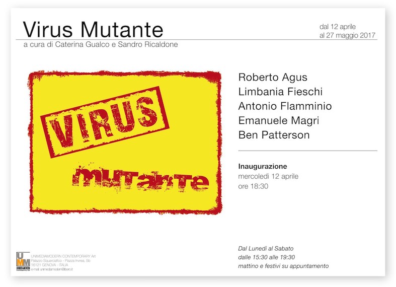 Mercoledì 12 Aprile 2012 alle ore 18.30, inaugurazione della mostra “Virus Mutante: Postmodern Reloaded” presso la galleria d’arte UnimediaModern di Caterina Gualco, situata in Piazza Invrea 5 b a Genova.