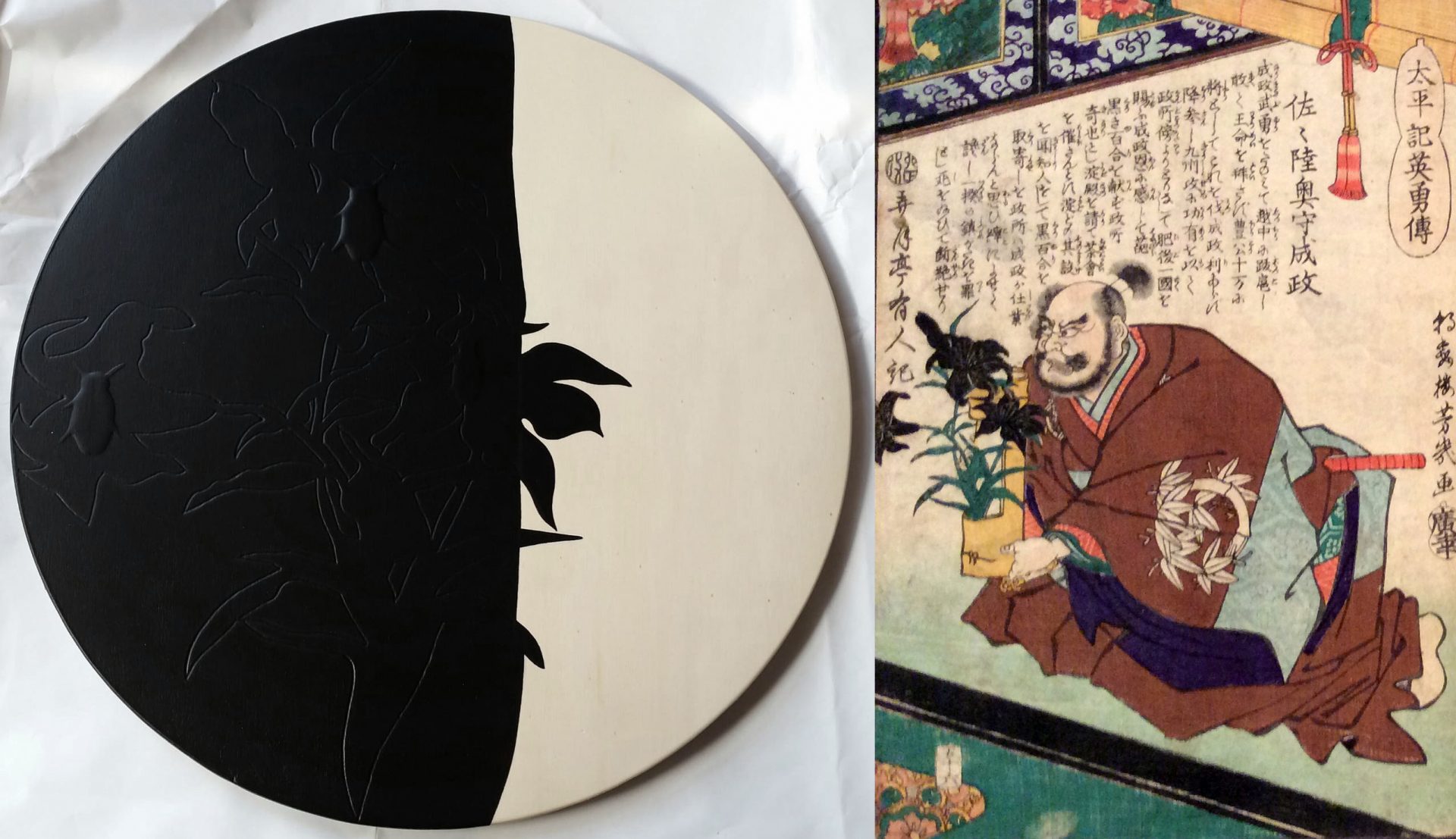 L’incontro tra l’arte del “mondo fluttuante”, l’ukiyo-e giapponese, e l’arte contemporanea mediante l’accostamento di opere di alcuni artisti contemporanei di diversa provenienza e generazione ed una trentina di xilografie giapponesi del XIX secolo, suggerisce che, al di là delle ovvie differenze, vi è un’unitarietà di fondo dell’arte nel mondo, nei formalismi indagati, nella costruzione dell’immagine, nel carico emotivo evocato. L’arte giapponese conosce nei periodi Edo e Meiji una vera esplosione di creatività, come una “primavera artica” breve e intensa,che vede i creatori di xilografie ukiyo-e percorrere tutti i sentieri di ricerca espressiva a disposizione. Così fa, su una scala diversa, l’arte contemporanea. Codici espressivi dati vengono esplorati come nicchie libere di un ecosistema. Il senso della mostra: far intravedere questa unitarietà di fondo del pensiero artistico di mondi ed epoche così distanti. Gli artisti contemporanei Elvio Chiricozzi, Stefano Di Stasio, Iulia Ghiţa, Uemon Ikeda, Leila Mirzakhani, Laura Palmieri, Luca Maria Patella e Giuseppe Salvatori incontrano alcuni autori di stampe ukiyo-e, come Utagawa Kuniyoshi, Utagawa Yoshiiku, Isseisai Yoshikatsu,Yamazaki Toshinobu, Ichiousai Yoshiume, Konishi Hirosada,Utagawa Shigenobue molti altri.