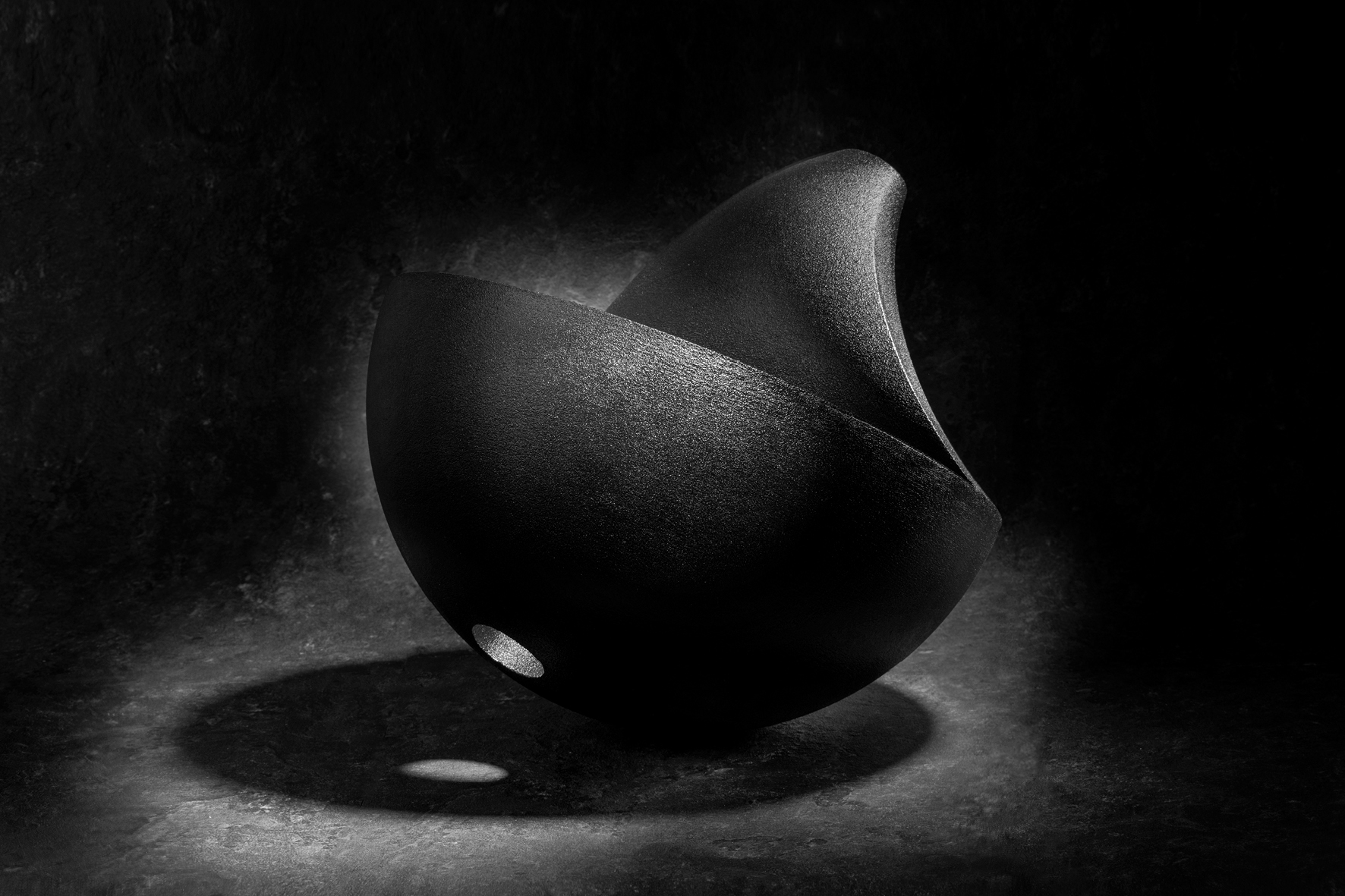 Dario Santacroce, scultore, concentra la sua ricerca sul tempo, vissuto come metafora, teoria, esperienza e visione. Crea forme scultoree pure, impiegando materiali innovativi e strumenti tecnologici d’avanguardia. Santacroce ha realizzato un proprio universo scultoreo, un mondo ricco di simboli e archetipi, centrato sull’utilizzo di materiali al 99% minerali e sulla stampa in 3D che permette quasi di azzerare lo spreco di materia. Le opere esposte in mostra appartengono alle serie Spherical Creations e Hemi-Spheres atte a documentare la ricerca estetica dell’artista basata sulla manipolazione