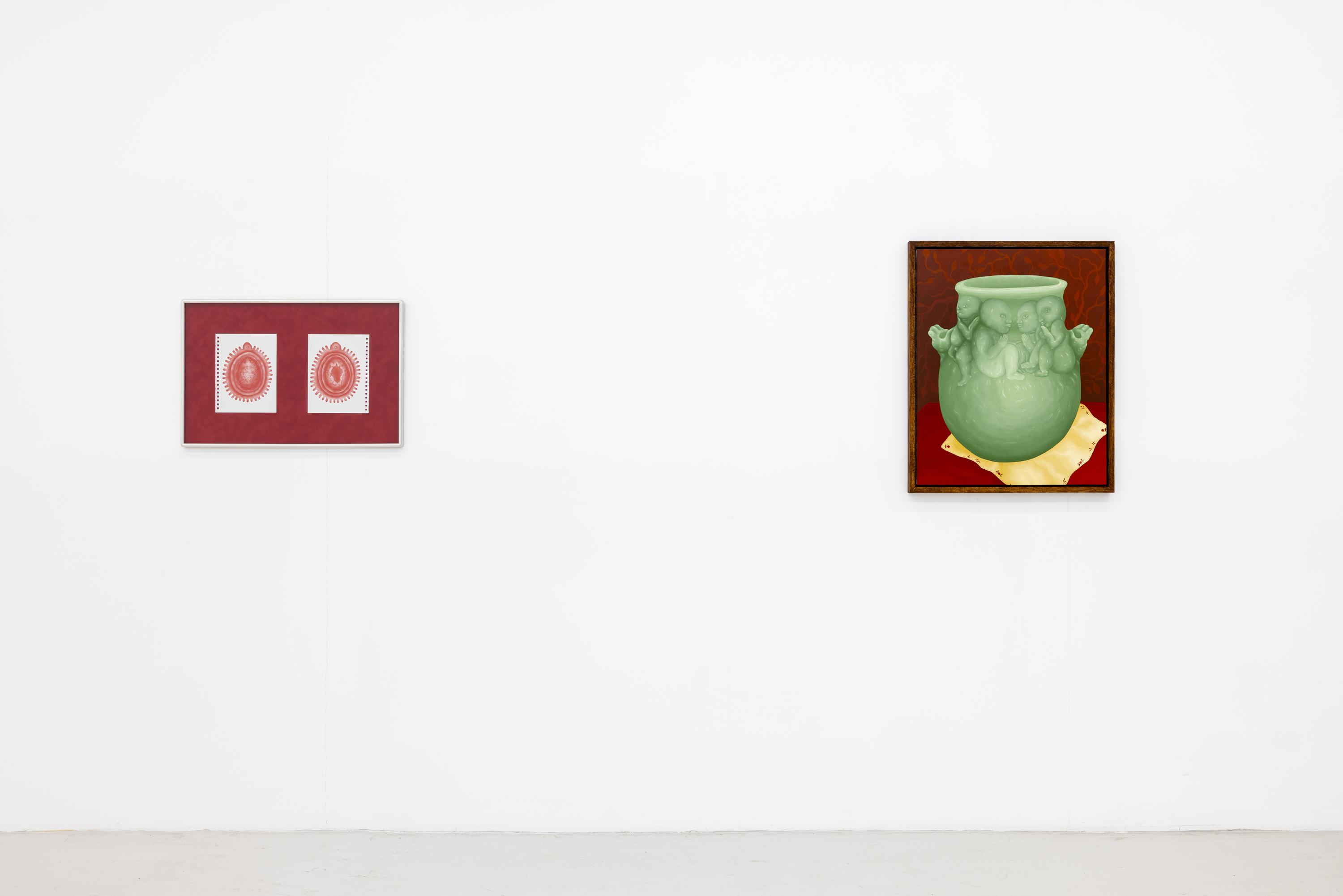 L’empatia in grado di sbloccare l’immaginario dell’artista è la forza cardine testimoniata dall’opera Nido di María Fragoso Jara. Un vaso decorato su uno sfondo dalle tinte sanguigne ospita un gruppo di piccole e paffute creature ibride che evocano il simulacro di un ex voto nel quale forze animali, natura umana ed oggettualità coesistono. In pittura, ma anche nella sua preziosa opera su carta intitolata Ex voto para una madre, la simbologia e l'allegoria sono significanti chiave nella pratica di Fragoso, nella quale l’artista riesce a rende palpabile una sfumatura religiosa della dimensione sessuale.