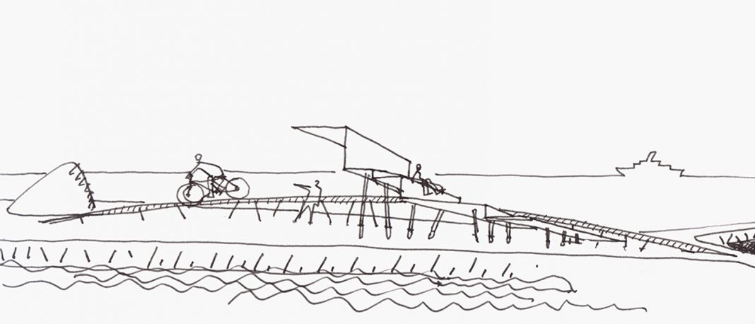 Nelle architetture di Aldo Aymonino il passaggio dal disegno al progetto, all’elaborato tecnico, al rendering e alla costruzione racconta un processo concettuale e fisico nel quale fin dal principio l’architettura è guidata da un’idea inseparabile dai suoi modi di espressione. A mano a mano che si procede dai primi abbozzi alla definizione a cambiare non è tanto l’idea, quanto il suo potenziale attuativo. Questo, a sua volta, non si concretizza restringendo l’immaginazione dell’idea ma al contrario arricchendola, aggiungendo nuovi elementi di connessione materiale e metaforica a quelli che erano stati messi gioco inizialmente. Le ricerche preliminari su un sito possono fare emergere la genealogia della sua configurazione attuale, descriverne le caratteristiche ambientali, valutare l’impatto sistemico che nuovi interventi tecnici possono avere avuto sul paesaggio umano, sociale e naturale. L’idea architettonica di Aldo Aymonino non va alla ricerca di compromessi o punti di equilibrio, non cerca solo di armonizzarsi con il contesto naturalistico né tantomeno di rivestire i dispositivi tecnici con una confezione estetica. Invece di limitarsi a mettere ordine nei frammenti di uno spazio lacerato queste architetture fanno letteralmente apparire relazioni invisibili o che sembravano scomparse, le attivano e le mettono in movimento evidenziando i loro riflessi anche con l’uso di materiali che giocano con il sole e con l’acqua, oppure con l’illuminazione notturna che le trasforma in personaggi teatrali. Sono letteralmente architetture in movimento nelle quali le scelte stilistiche, formali, diventano il condensatore dei blocchi di spazio-materia in cui consiste l’idea.