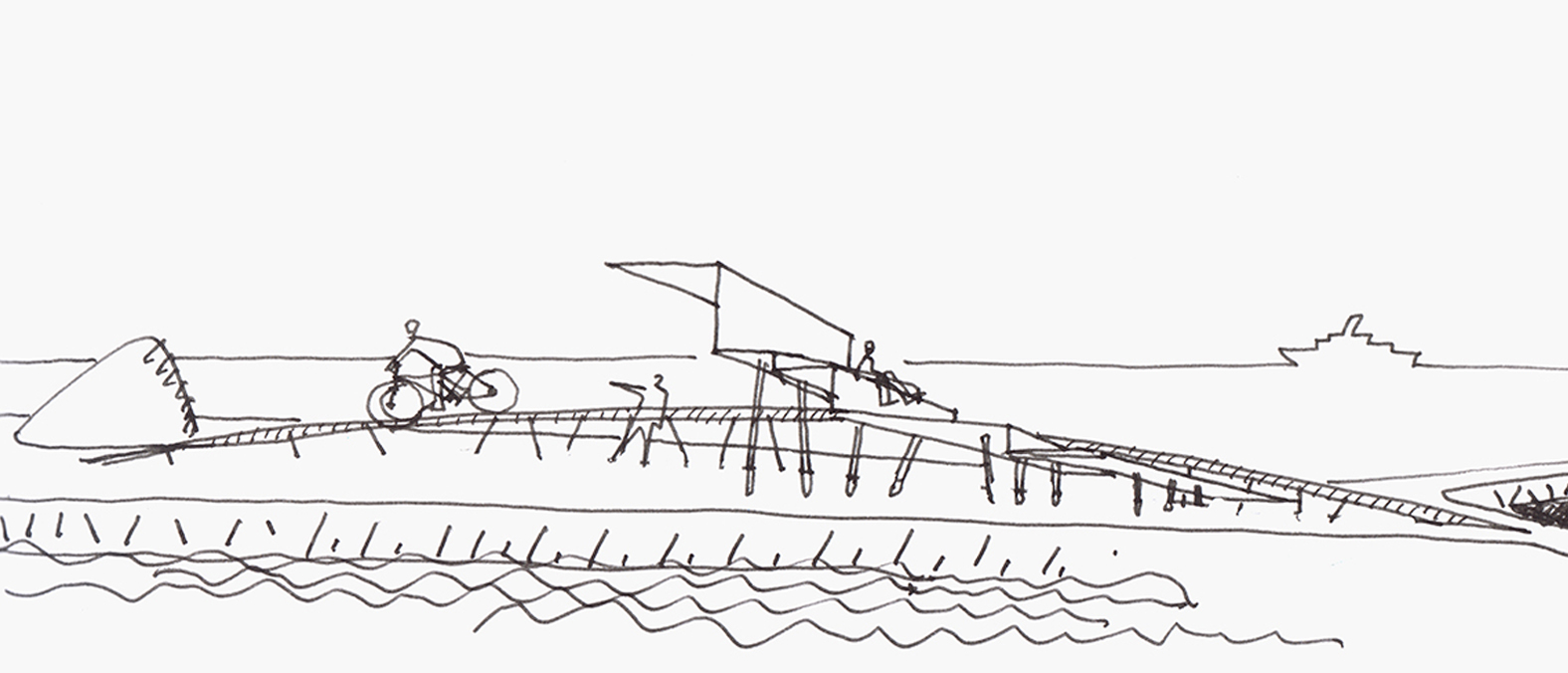 L’esempio delle due bocche lagunari di Chioggia è emblematico. È il tentativo di trovare il luogo di un dialogo fra la tecnologia e il paesaggio proprio attraverso il medium di un’architettura che tuttavia non funge da raccordo, ma da principio di trasformazione. Tramite i cambiamenti percettivi che genera l’architettura compone in un nuovo disegno esigenze e attività che sembravano antitetiche. Ma è proprio quando viene chiamata a misurarsi con un insieme di elementi apparentemente incomponibili che l’architettura ha bisogno di idee e non di soluzioni standard. In questi lavori di Aldo Aymonino le idee architettoniche sono appunto sistemi di connessione fra elementi disomogenei che trovano espressione nella continuità fra disegno, progetto e costruzione. Le scelte formali sono un segnale di queste reti sistemiche, ne rappresentano i nodi, ma non ne sono il fulcro.