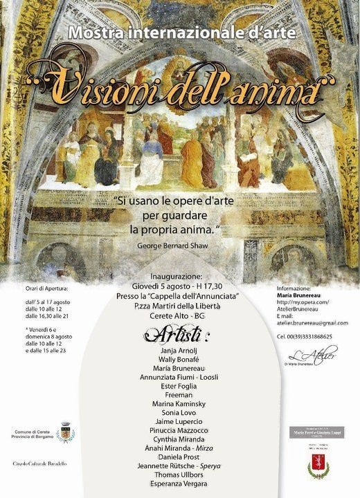 Dalle parole di G. B. Shaw nasce la mostra “Visioni dell’anima” che verrà inaugurata giovedì 5 Agosto e si protrarrà fino al 17 Agosto.