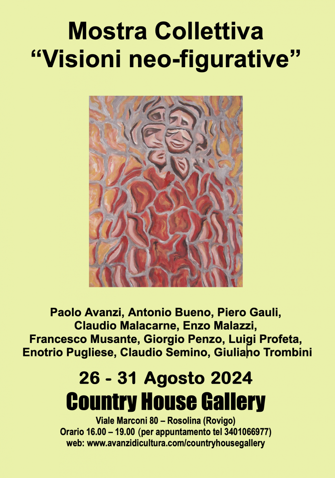 Country House Gallery, location di campagna nel delta del Po, presenta una collettiva di artisti italiani, a cavallo tra secondo novecento e terzo millennio, le cui opere esposte sono rappresentative della loro personalità.