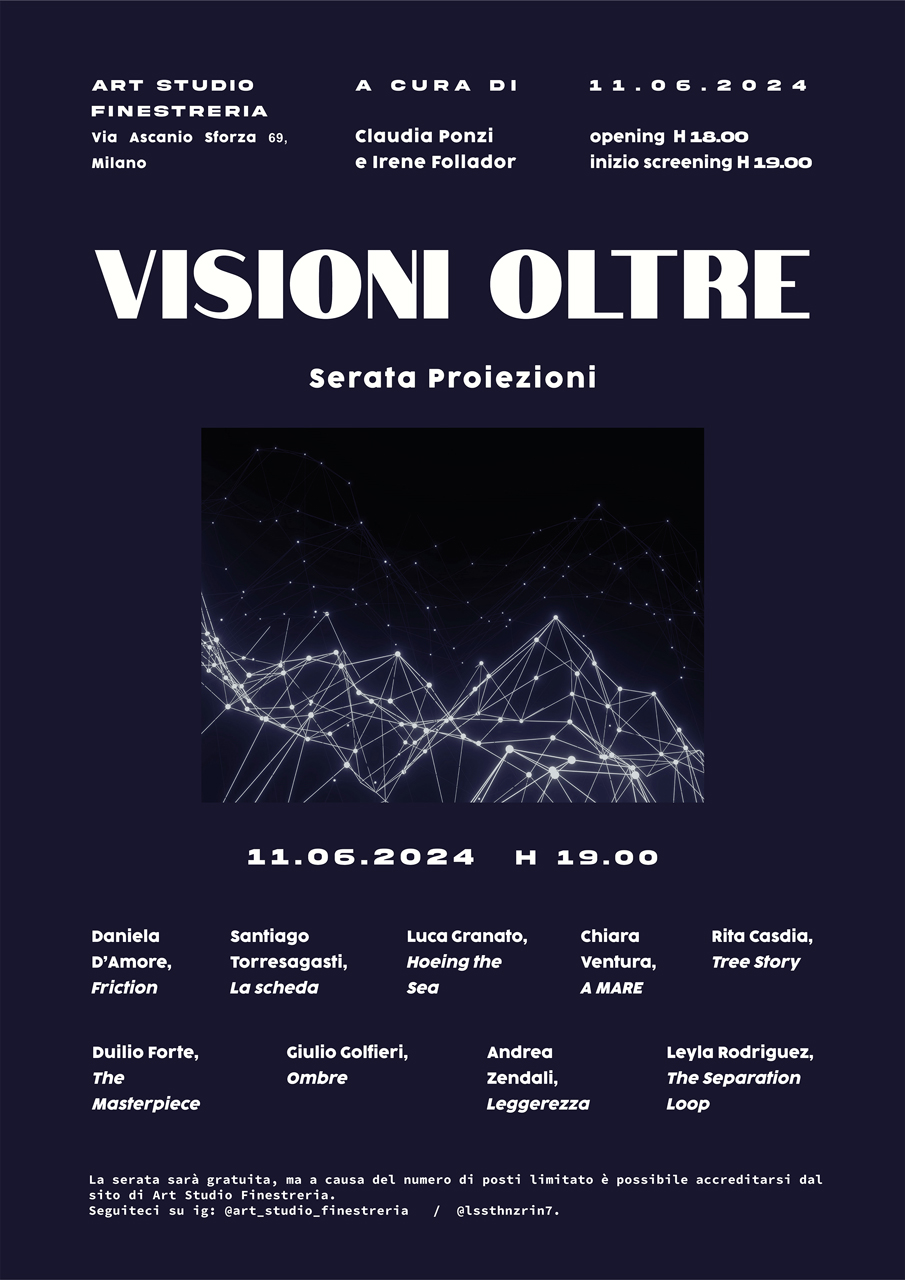 VISIONI OLTRE Serate Proiezioni 11 giugno 2024 | Screening H 19.00 Opening H 18.00 Art Studio Finestreria, Milano a cura di Claudia Ponzi e Irene Follador