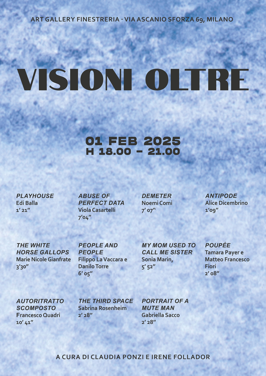 Art Gallery Finestreria di Milano è lieta di annunciare un evento del progetto VISIONI OLTRE (3°edizione), una serata screening in concomitanza della mostra CARTE BLANCHE deli artisti Idem Studio.