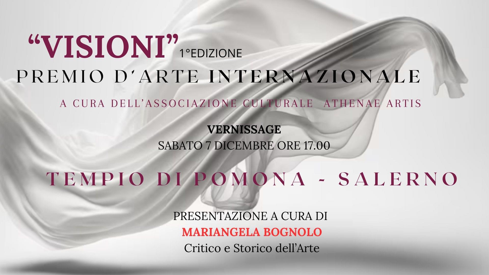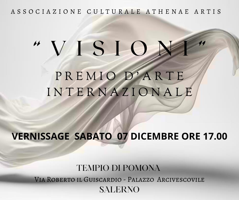Dal 7 al 14 Dicembre 2024 il Suggestivo Tempio di Pomona Palazzo Arcivescovile, a Salerno, ospiterà la prima edizione del Premio d’Arte Internazionale «VISIONI» realizzato dall’Associazione Culturale “Athenae Artis” con il patrocinio del comune di Salerno.