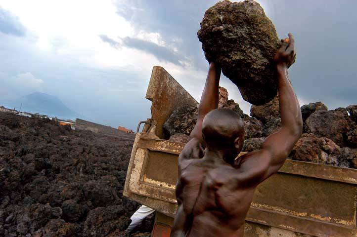 Al mercato della lava, il reportage di Riccardo Gangale mostra all’interno di un’economia distrutta e ridotta allo stremo dall’eruzione di un vulcano in Congo, l’invenzione di un lavoro, quello dei trasportatori di lava essiccata.
