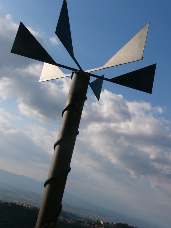 Un gioco sul molteplice significato delle parole. Una vite senza fine costruita con una spirale che avvolge un cilindro che si muove all'arrivo del vento e che ricorda l'attorcigliarsi naturale delle viti dell'uva. Una macchina inutile che col suo incostante movimento segna il perenne rincorrersi delle vite.