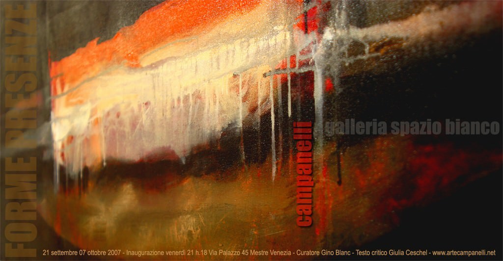 Perciò la pittura di Campanelli assume, come elemento tautologico, l’arma affilata della pittura, capace di deformare la materia ed il colore, per racchiudere in sé un frammento indefinito del caos interiore, dell’io più celato dell’artista. Così con tale risposta antitetica al sociale, l’artista si lascia smarrire all’interno di un sogno esultante.