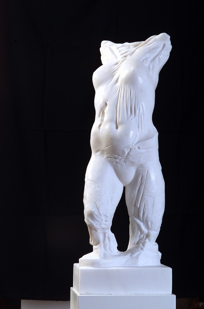 Le sue figure dalle chiome voluminose, agitate da un vento invisibile, che tutto muove, anche i veli che avvolgono i corpi sinuosi, esili e scattanti, esprimono il senso dell’umano. Quella sensualità mesta, quell’antica innocenza e quell’eroicità senza tempo, che connotano le sculture, svelano un mondo perduto, che ha trovato esilio in un immaginario mitologico, che non vuol essere l’emblema di una rinuncia al contemporaneo, quanto invece la manifestazione del disagio esistenziale di un artista, che ha posto al centro del suo lavoro la complessità del pensiero.
