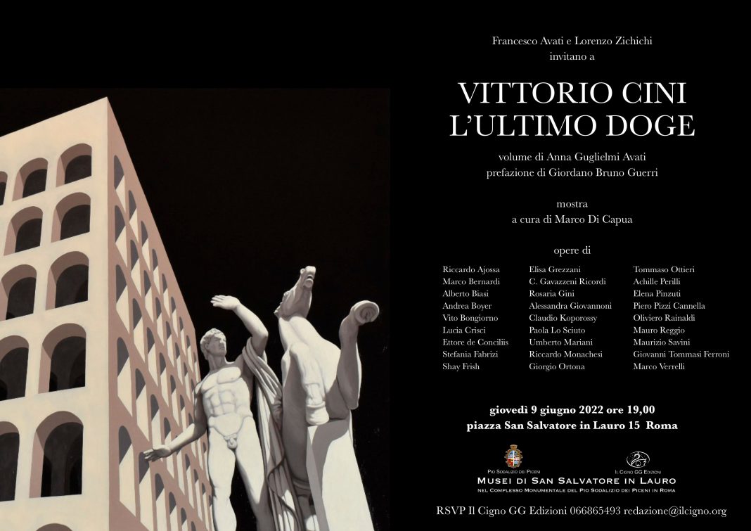 “Vittorio Cini. L’ultimo Doge”, a cura di Marco di Capua, è l’esposizione, con ingresso gratuito, aperta fino al 24 luglio nei Musei di San Salvatore in Lauro a Roma. Saranno esposte le opere di 27 artisti contemporanei. L’organizzazione e il catalogo sono a cura de “Il Cigno GG Edizioni”