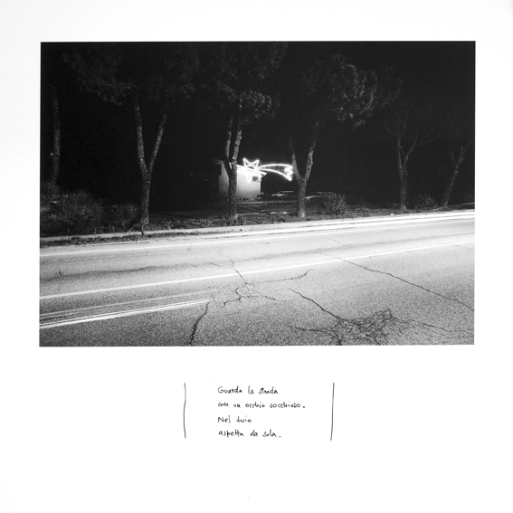 Statale 17. Questo era il suo incipit nel live con i Nomadi del 1979. Ma anche Tra la via Emilia e il West. Vecchi titoli di Guccini continuano a tornarmi in mente mentre guardo le immagini del progetto Al bordo della strada.. Un fotografo e un narratore, Matteo Sauli e Vittorio Ferorelli, hanno percorso “eludendo ogni obbligo di velocità” l’intero tracciato da Piacenza a Rimini di questa via antica e sempre attuale. Ma il loro non è un blues, non c’è Dylan alle spalle, no, qui c’è qualcosa di elettronico, come delle campionature di rumori quotidiani intervallate da silenzi. Parole e fotografie delineano apparizioni di immagini senza una storia evidente, senza attese, senza una meta, neppure una distante, utopica, idealizzata.