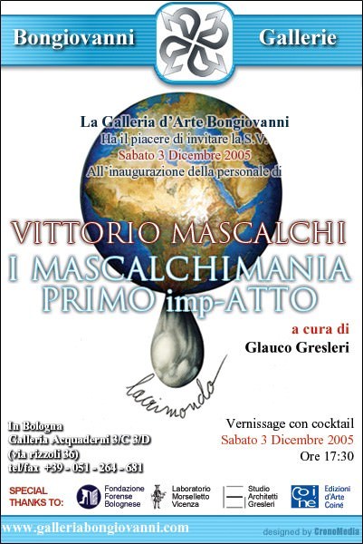 Si inaugura Sabato 3 Dicembre presso Bongiovanni Gallerie di via Rizzoli, in Galleria Acquaderni 3c-3d a Bologna la prima di tre mostre personali di Vittorio Mascalchi, già direttore dell’Accademia delle Belle Arti di Bologna, curata da Glauco Gresleri.