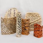 Ceramica Raku forgiata in piccole ciotole, raffinati vasi impreziositi da iridescenze, craquelure. Carta, legno, colori evocano la terra dell’artista, il Libano. Un saper fare ancestrale, una assidua sperimentazione, contaminazioni con media contemporanei come l’installazione e la fotografia.