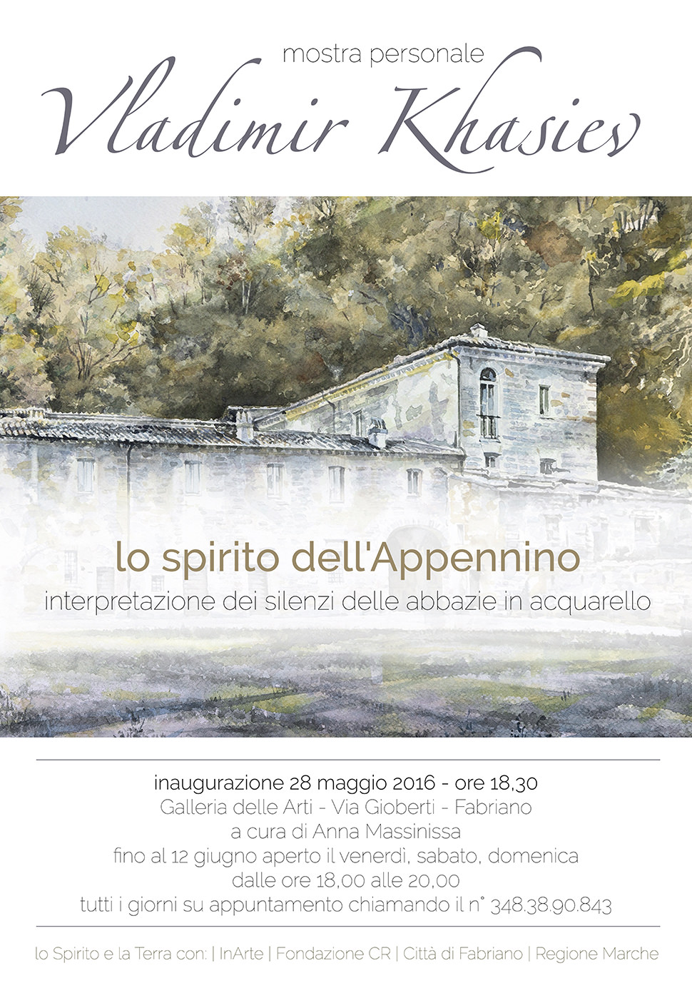 Personale dell’acquarellista Vladimir Khasiev, che rende omaggio alle abbazie e ai monasteri che popolano il territorio di Fabriano e di altri comuni limitrofi, rendendo questo lembo di Appennino unico al mondo per un’incredibile storia spirituale scritta in una natura rigogliosa.