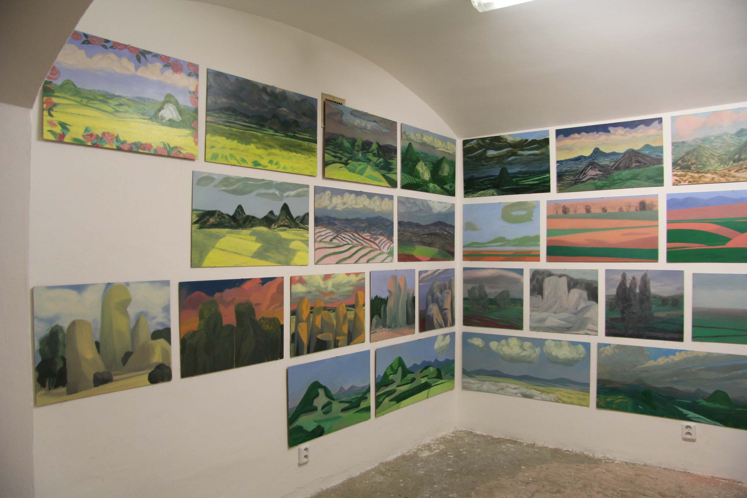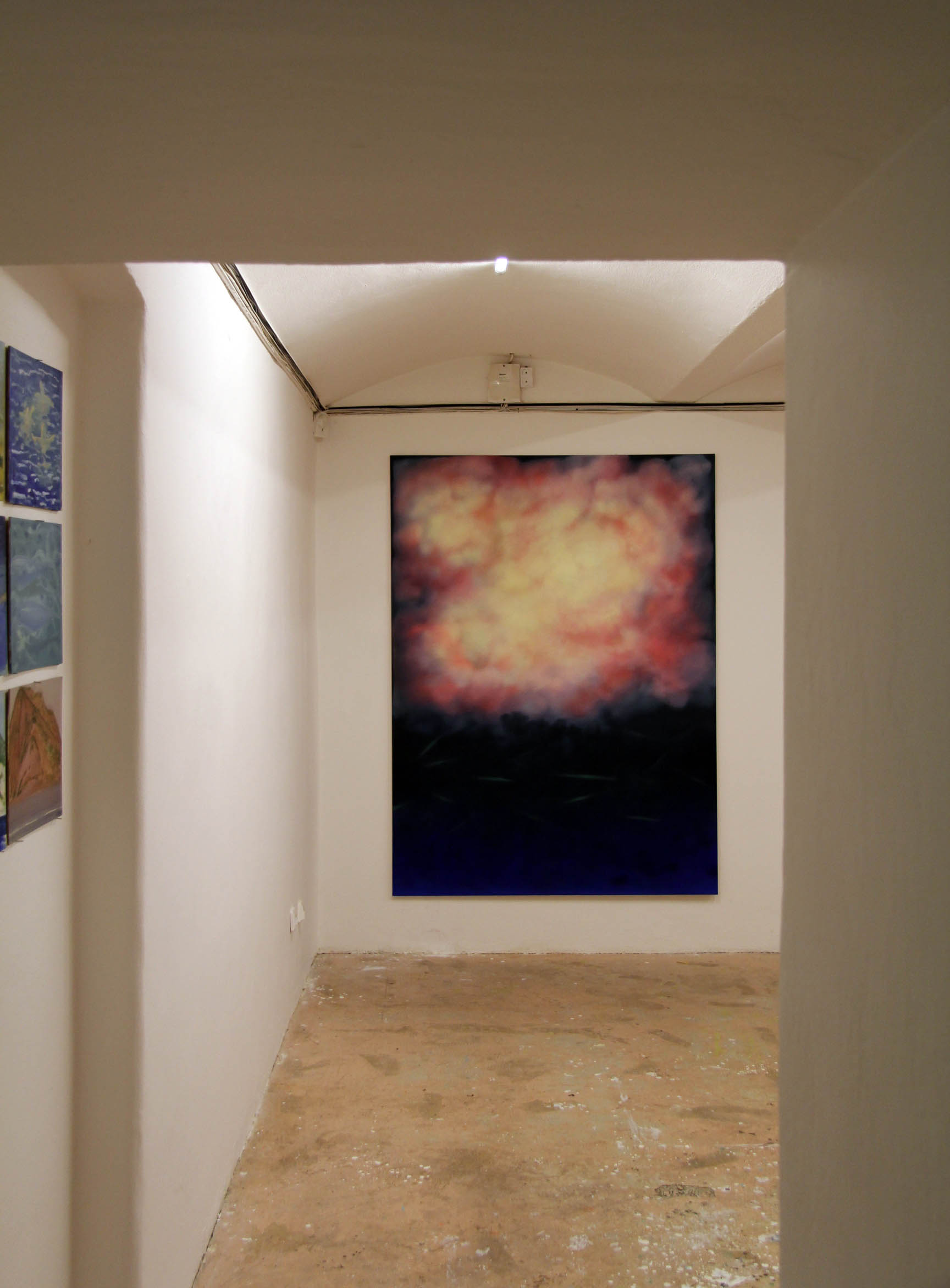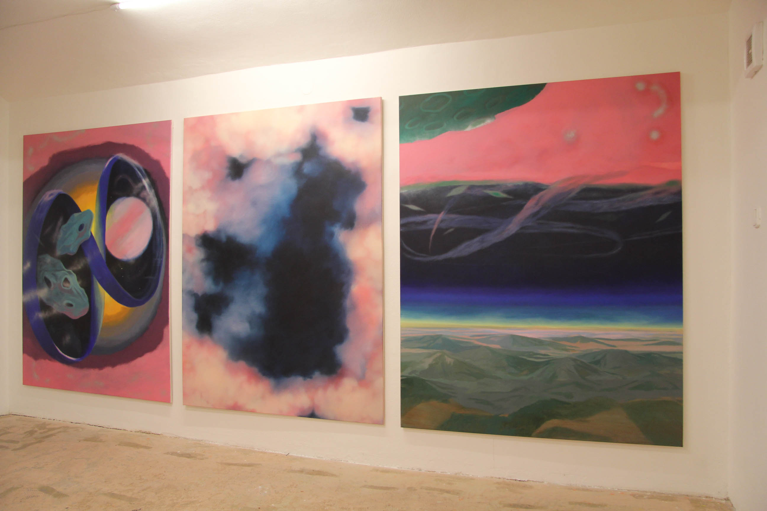 La mostra A Bigger Crunch propone Conspiratory Landscapes, una serie evolutasi negli ultimi tre anni dai quadri di dimensioni contenute fino a tele di grandi dimensioni e altrettanto vale per i quesiti affrontati.