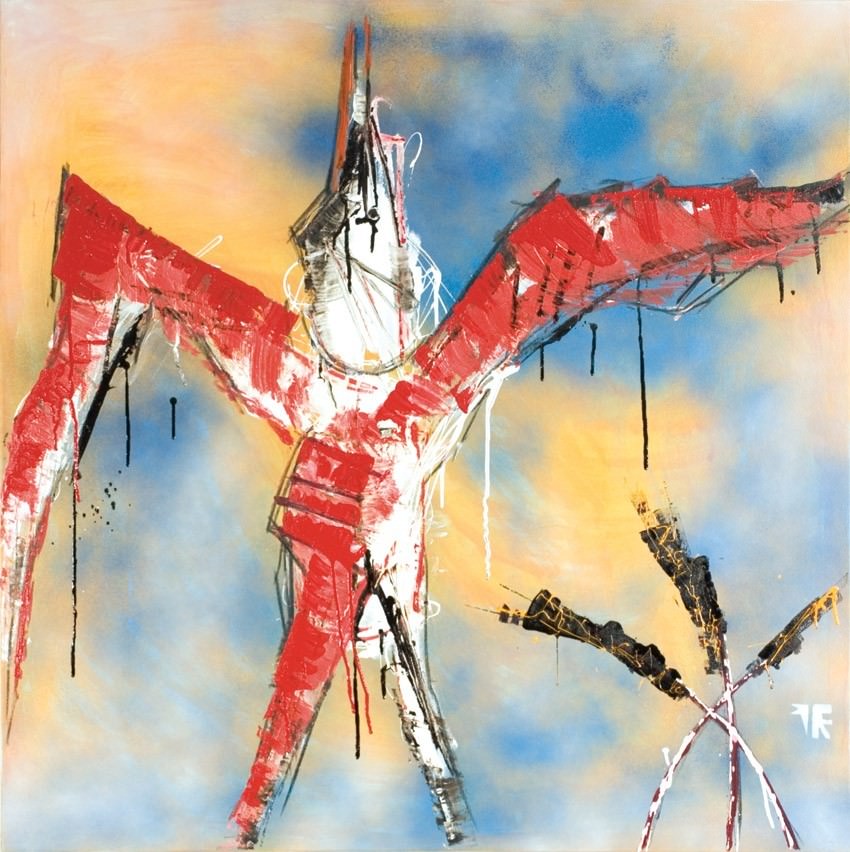 Vivaci gabbiani si muovono liberi nell’ambiente caratteristico delle nostre zone palustri nelle opere di Roberto Pagnani. Artista cresciuto in un ambiente familiare ricco di stimoli artistici, si è formato, nella pittura, a contatto diretto con opere e personaggi tra i più rappresentativi della cultura italiana ed europea, come Mattia Moreni e Georges Mathieu. La sua ricerca, caratterizzata da un approccio informale, pone sempre grande attenzione all’ambiente che contraddistingue le nostre zone. In questo caso gesti veloci e macchie di colori decisi vanno a comporre uccelli in volo e piume stilizzate.