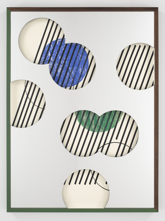 Mika Tajima (1975, Los Angeles, vive e lavora a New York) crea sagomate forme spaziali, attraverso modulari pannelli che deformano e rendono illusoria e contaminata la riflessione nello specchio.