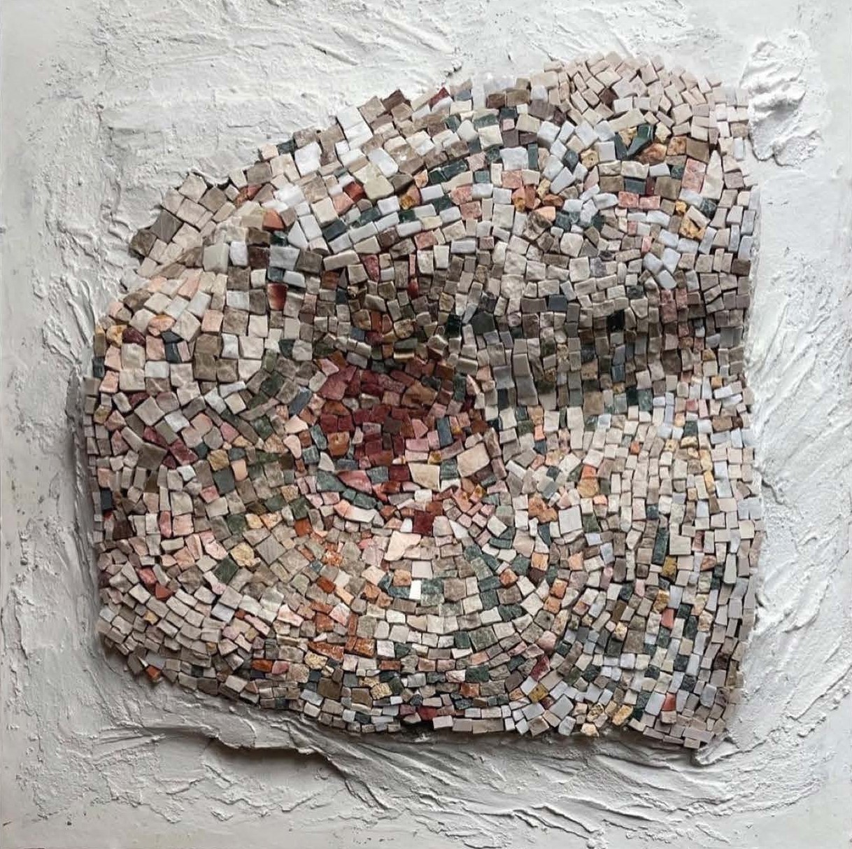 Vsevolod Prokhorov è giovane, russo, ama sperimentare. La sua formazione musiva italiana è avvenuta a Spilimbergo, con tutto quello che in termini di petrosità implica l’imprinting di questa scuola, innestato sul precedente percorso di studi grafico-pittorici avvenuto nella madrepatria.