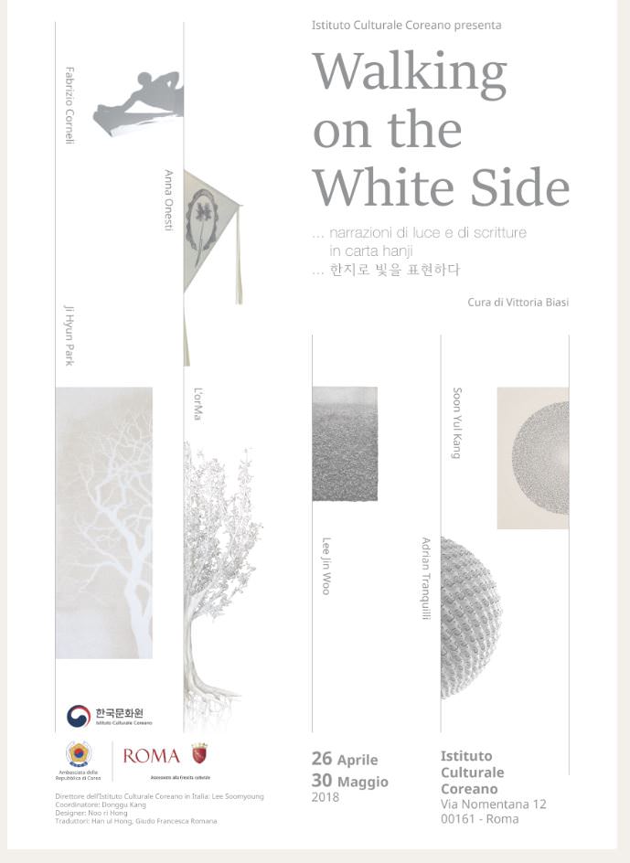 Giovedì 26 aprile alle ore 19 l’Istituto culturale coreano in Roma e il direttore Lee Soomyoung ospitano la mostra Walking on the White Side a cura di Vittoria Biasi con la partecipazione degli artisti coreani e italiani.