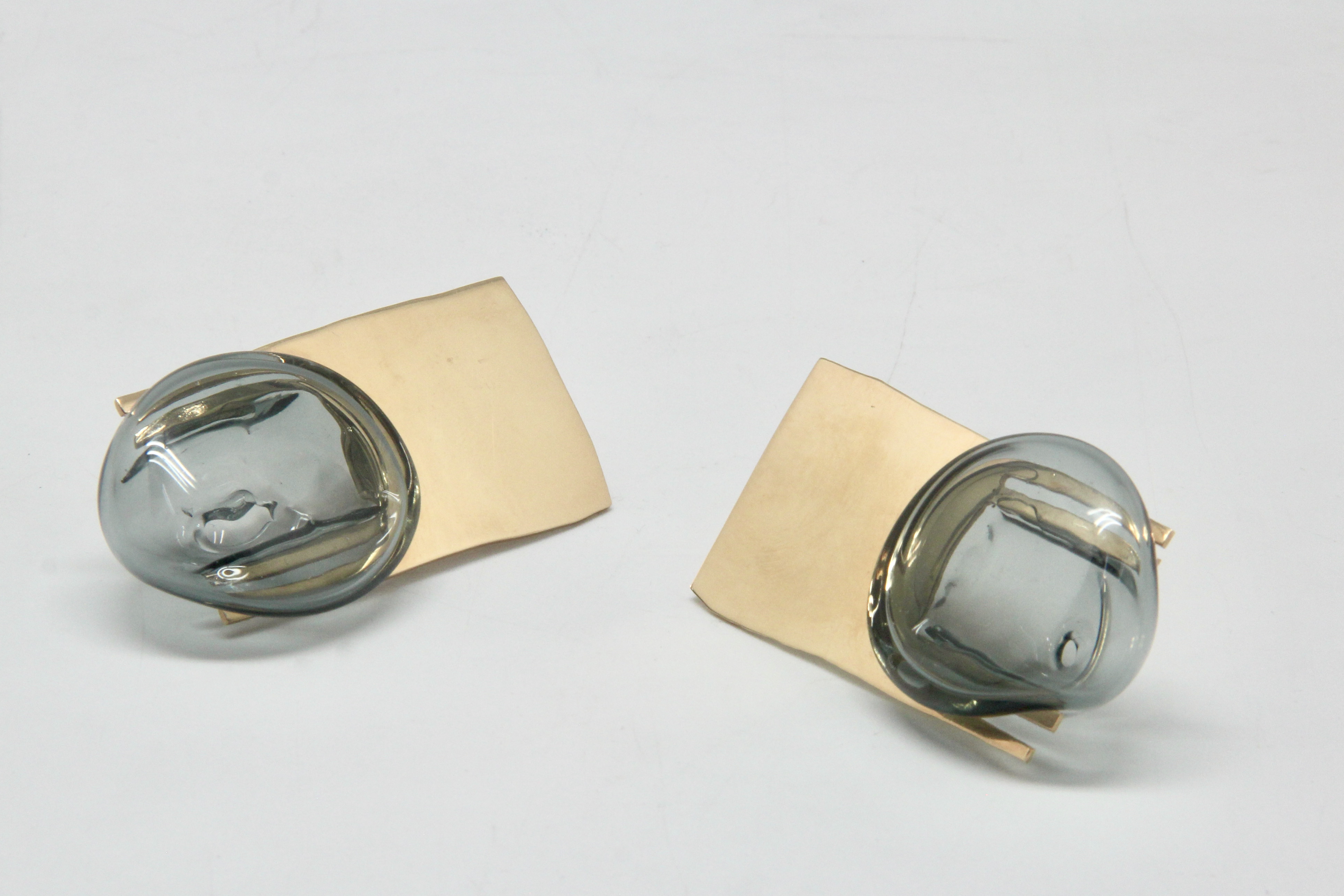 Ogni gioiello nasce da lastre di metallo rifinite a mano sulle quali viene applicato il vetro soffiato attraverso un gioco equilibrato di contrasti tra volumi. Caratteristica unica della collezione è la multifunzionalità: le spille diventano pendenti, gli orecchini diventano spille e così via, con il risultato di avere più gioielli in uno.