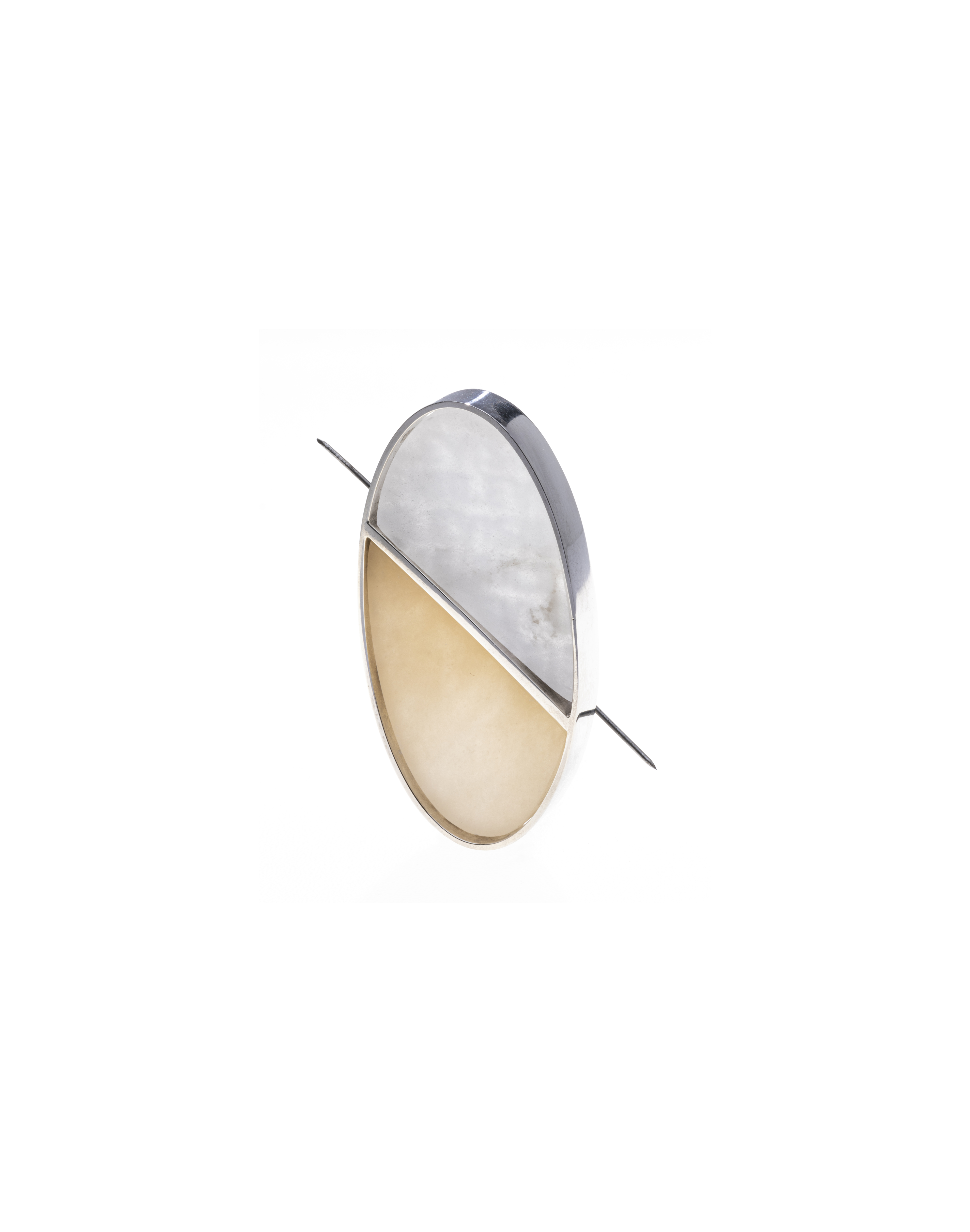 Nella collezione NOW.HERE.VOID la luce diventa un mezzo necessario per svelare che oltre la realtà tangibile c'è altro che aspetta di essere rivelato. L'alabastro, un materiale semitrasparente, diventa lo strumento adatto per mostrare ciò che esiste e che non possiamo vedere. Posti in controluce i suoi gioielli rivelano, dietro la loro forma ellittica, una scritta che recita "VISIBILE".