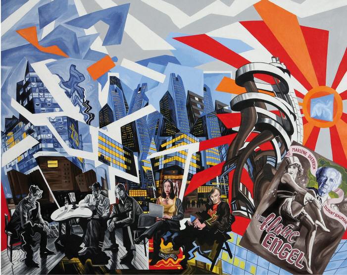 Walter Bortolossi con questa solo exibition alla Galleria Antonio Battaglia di Milano, dopo una recente personale a Berlino, vuole rendere omaggio al celebre film Der blaue Engel (L’Angelo Azzurro) di von Sternberg e ai suoi indimenticabili protagonisti. La ballerina di un cabaret di infimo ordine (Marlene Dietrich) e il professore di liceo (Emil Jannings) che cade in rovina invaghendosene, suggeriscono il filo conduttore di buona parte dei quadri in mostra.