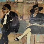 Come foto ricordo o vecchie polaroid, emergono le immagini vivificate da una pittura capace di unire la stesura gestuale alla sintesi grafica. I segni e le macchie di colore lasciano trasparire i collage sottostanti di vecchie carte geografiche, spartiti, libretti musicali, giornali e riviste con marchi pubblicitari. Nel continuo flusso dei ricordi, il “felice” segno dell’artista riesce a rendere vivido ogni piccolo frame e a conferire nuovo senso e significato alle immagini cariche di umanità.