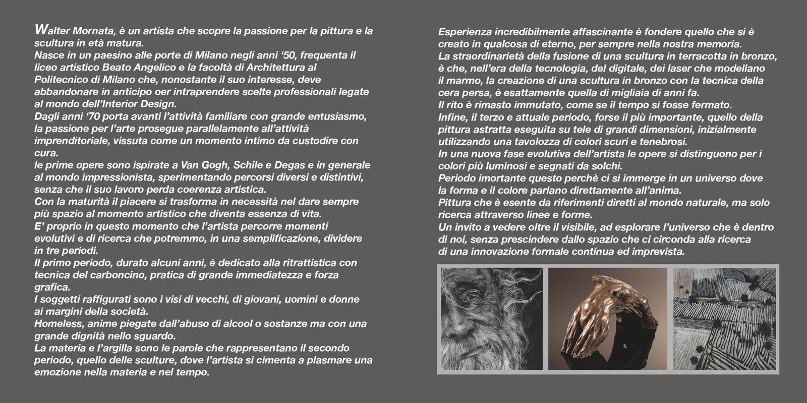 Walter Mornata, è un artista, che scopre la passione per la pittura e la scultura in età matura.