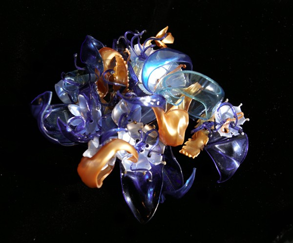 Sin dal nome la mostra sottolinea l’atto del plasmare nuove forme partendo da materiali quali il pet, sino ad infondere nuovo afflato in un pezzo apparentemente inerte di materia plastica. Ne scaturiscono infatti, come farfalle lievi, creazioni di rara bellezza, per forme, colori, trasparenze.