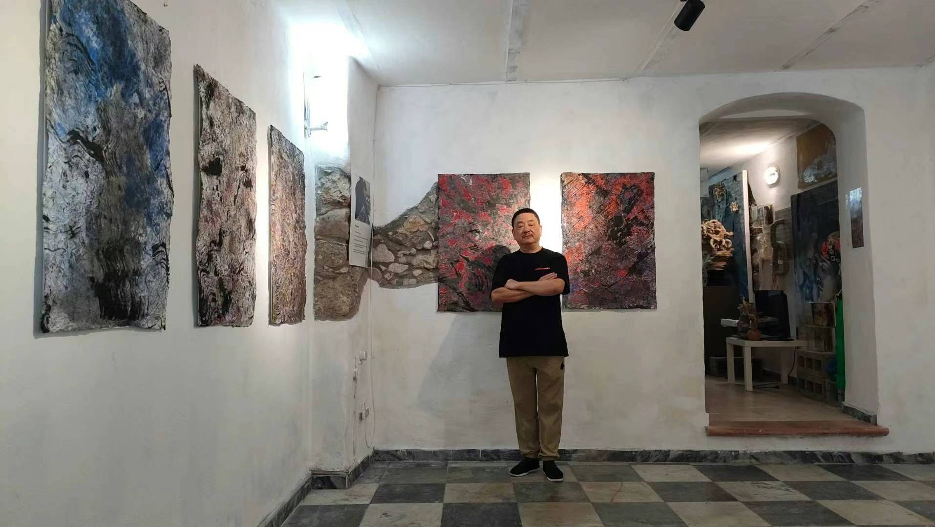 Egli non si limita all’uso del materiale tradizionale cinese, ma mescola i colori all’inchiostro cinese e i colori acrilici sulla carta Xuan cinese; traedo una forte ispirazione dall’espressionismo astratto, soprattutto dal carico di energia e dal fascino imprevedibile di Pollock, sviluppando uno stile peculiare e unico. (Articolo scritto da Hu Huiming)