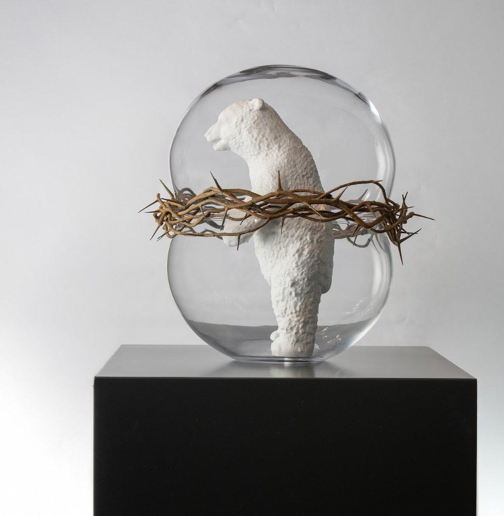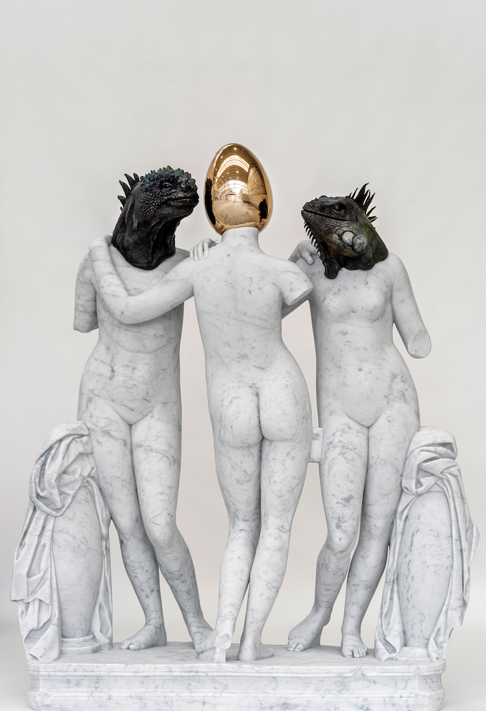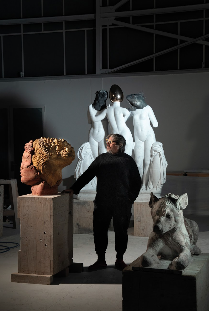 The show features 40 new works of belgian artist Koen Vanmechelen, spanning bronze, marble, glass, photography, and video, exploring the relationship between living organisms and the inorganic environment.