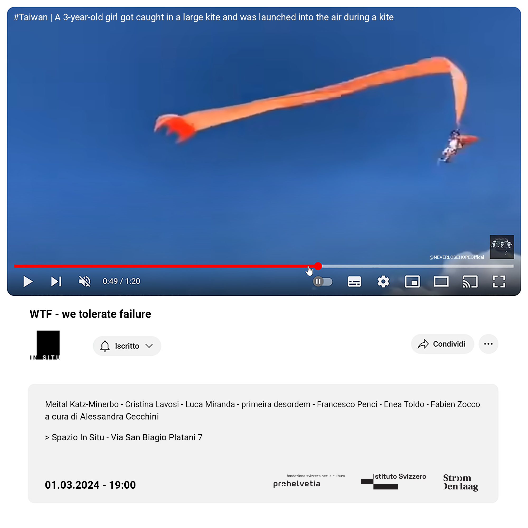 La mostra è realizzata con il sostegno di ProHelvetia, Istituto Svizzero, Stroom Den Haag.